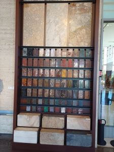 La Collezione dei Marmi Italiani si compone di due parti. La prima comprende grandi lastre di pietre ornamentali, con campioni delle Alpi Apuane, principalmente marmi, presentati in cataloghi delle esposizioni universali degli anni ’80 dell’Ottocento e successivamente ampliati. La seconda contiene blocchi di materiale decorativo, lavorati e lucidati, con almeno una faccia levigata. La Collezione dei Saggi Artistici e Ornamentali include esempi di lavorazione del marmo, come balaustre e colonne, alcuni dei quali furono inviati alle esposizioni di Vienna nel 1873 e Parigi nel 1878.