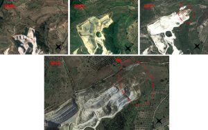 La consultazione delle immagini satellitari storiche ha fornito l’evoluzione morfologica del fronte di cava che, a partire dal 2006, è stato man mano ampliato in direzione nord; già nel 2011 i versanti hanno manifestato i primi segni di instabilità e, tra il 2013 e 2014, la retrogressione di un corpo di frana ha interdetto la viabilità della strada comunale posta a monte (Figura 1).